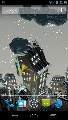 The snow is falling on the roofs of the old town and the neon colors are playing with the ligths. At the winter night you can choose the color of the sky. With the new touch and move feature you can grab and move items. But suddenly something happens: If you touch the roof of the hotel, it opens a door and you can see a figure that rises to the sky full of color. Merry Christmas dear travelers. Welcome to this miniature Paris. An animated background full of movement and imagination with traditional animations that have been hand drawn with great detail.